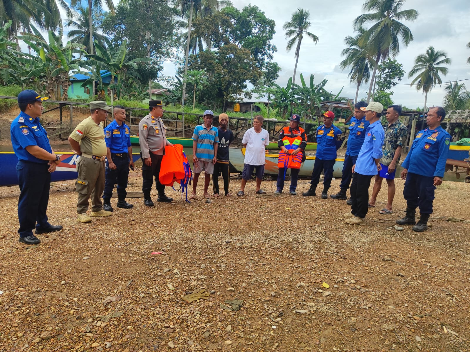Dalam kegiatan sosialisasi, Kapolsek Tabalar AKP Suradi, SH tidak hanya memberikan arahan tetapi juga membagikan baju pelampung (life jacket) kepada para nelayan sebagai bentuk dukungan nyata dalam meningkatkan keselamatan melaut.