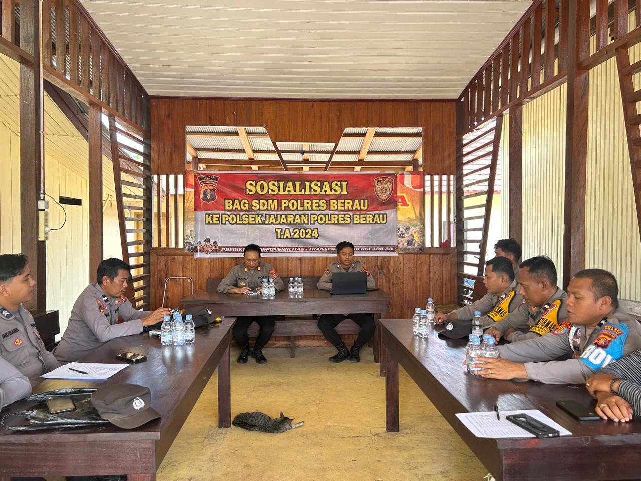 Polres Berau – Pada hari Rabu, 7 Agustus 2024, pukul 11.30 WITA, Bag SDM Polres Berau melaksanakan kegiatan sosialisasi di Mako Polsek Kelay.