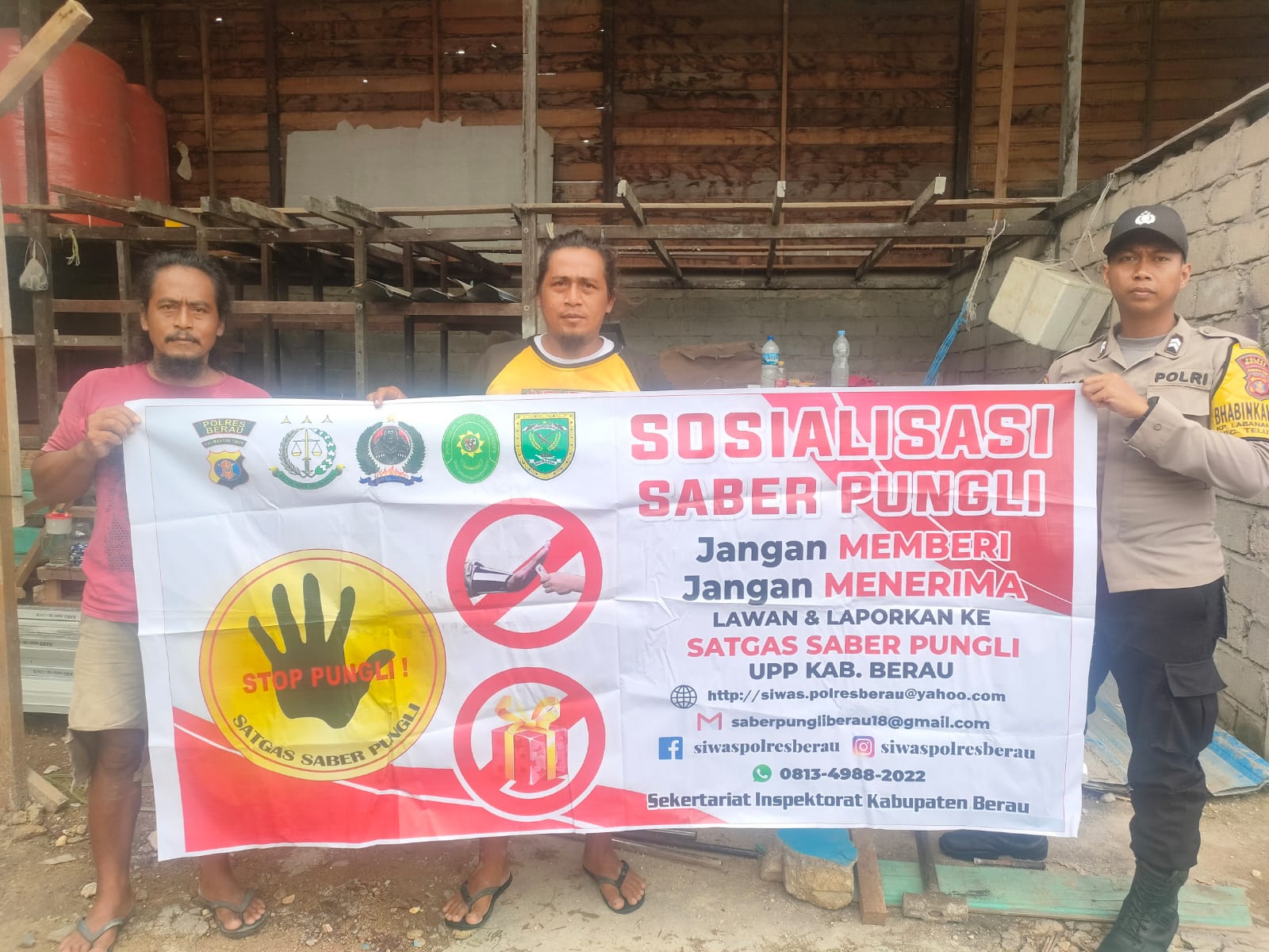 POLRESBERAU.COM, TELUK BAYUR – Bhabinkamtibmas Briptu Bima Dwi Sandoyo melaksanakan Sosialisasi Sapu Bersih Pungutan Liar (Saber Pungli) kepada warga binaan Kampung Labanan Makarti, Rabu (01/3/2023).