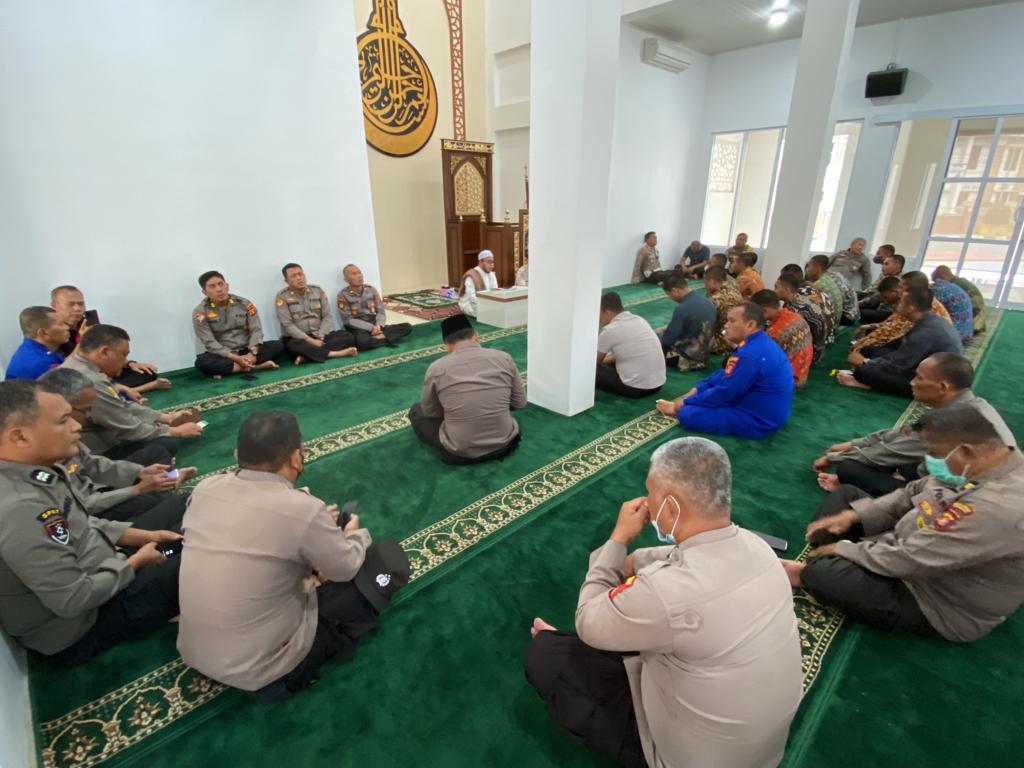 POLRESBERAU.COM, TANJUNG REDEB – Guna menciptakan sosok anggota Polri yang lebih humanis dalam mengemban tugas, puluhan anggota Polres Berau mengikuti pembinaan rohani dan mental (Binrohtal) di Masjid Al-Mubarok Wicaksana Laghawa dan Ruang Video Conference Polres Berau, Kamis (8/12/2022).