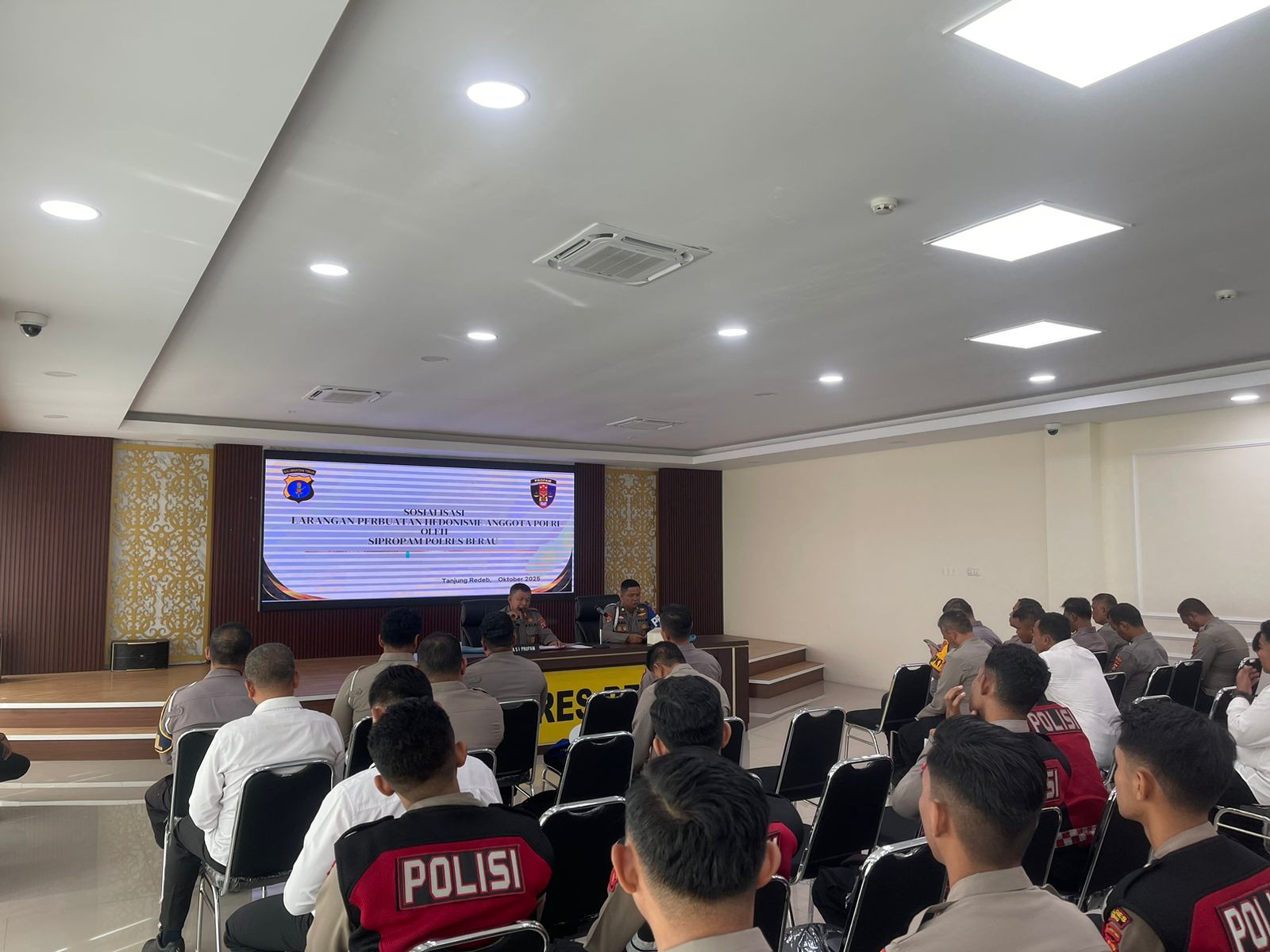 Polres Berau – Dalam upaya menegakkan disiplin dan menjaga citra anggota Polri agar tetap sederhana serta berintegritas, Seksi Profesi dan Pengamanan (Propam) Polres Berau menggelar kegiatan Sosialisasi Larangan Perbuatan Hedonisme terhadap Personel Polres Berau, Senin (6/10/2025) di Rupatama Polres Berau, Jalan Gatot Subroto, Kelurahan Bedungun, Kecamatan Tanjung Redeb.