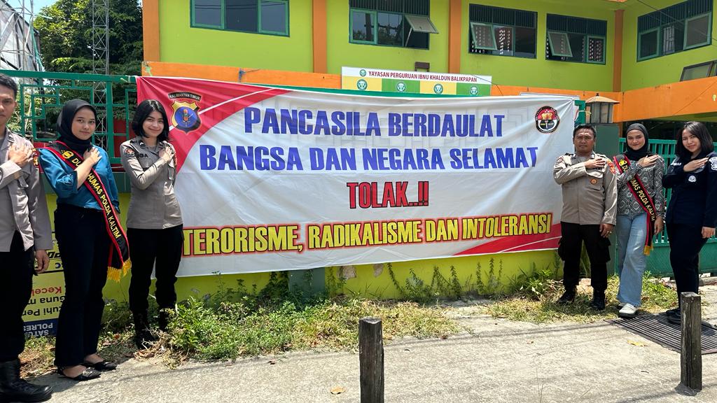 Balikpapan – Untuk mencegah paham intoleransi, radikalisme dan terorisme masuk di tengah-tengah masyarakat, Bidhumas Polda Kaltim hadir untuk memberikan imbauan Kamtibmas melalui pemasangan spanduk dan baliho di kawasan pemukiman Kampung Baru Kec. Balikpapan Barat agar masyarakat dapat mengerti dan memahami serta terhindar dari paham intoleransi, radikalisme dan terorisme, Selasa (17/10/2023).