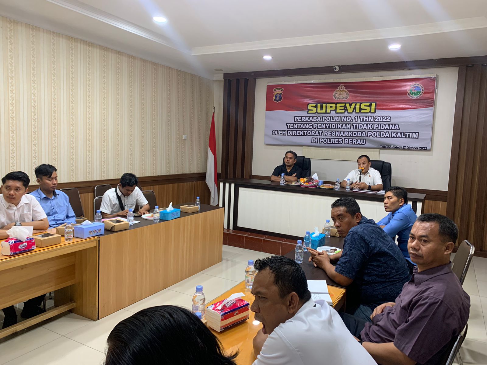 Tim supervisi dari Direktorat Resnarkoba Polda Kaltim, yaitu Wadirresnarkoba Polda Kaltim AKBP Rino Eko dan Kabag Wassidik AKBP Nurkotip. Didampingi oleh IPTU Aldino Subroto, dan Bripda Miftahul Fathul Qhorib, mereka memeriksa pelaksanaan penyidikan tindak pidana narkoba yang dilakukan oleh Polres Berau.