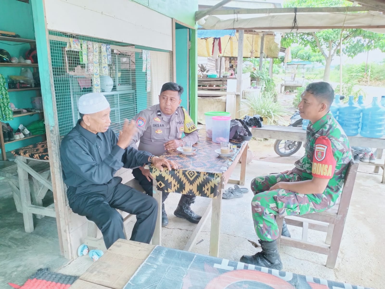 Bhabinkamtibmas dan Bhabinsa melaksanakan sambang sekaligus bersilaturahmi dengan tokoh masyarakat untuk menjalin kemitraan sekaligus menyampaikan himbauan dan antisipasi masalah maraknya kasus Pencurian dan Keamanan di lingkungan.