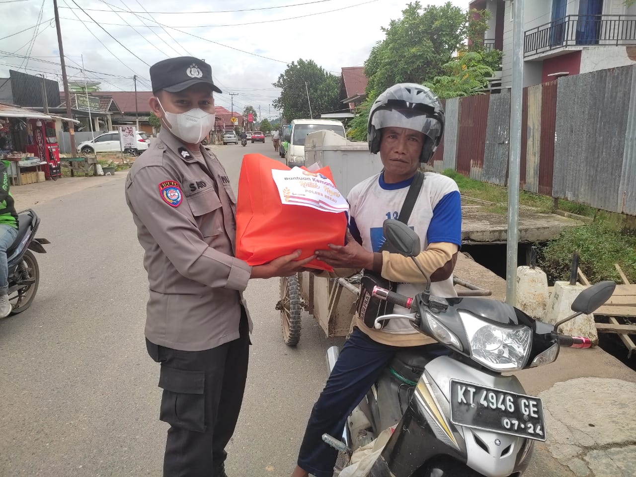 Kasi Humas Polres Berau Iptu Suradi mengatakan pembagian paket sembako itu diberikan kepada masyarakat kurang mampu. Pembagian ini diharapkan dapat membantu mereka.