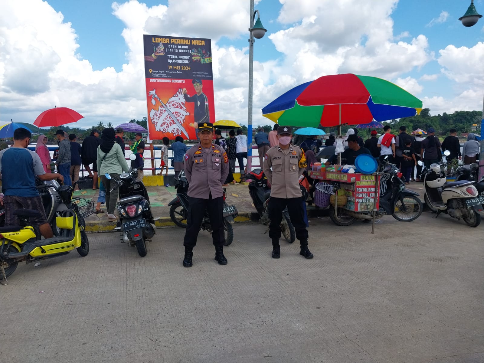 Polres Berau – Polsek Gunung Tabur sukses melaksanakan tugas pengamanan dalam Lomba Dayung Perahu Panjang Tradisional Open Berau, yang berlangsung di perairan Sungai Segah, RT 06 Kelurahan Gunung Tabur, Kecamatan Gunung Tabur, Kabupaten Berau, pada hari Minggu, 19 Mei 2024, mulai pukul 13.15 Wita. Kegiatan yang dihadiri oleh ribuan masyarakat dan peserta lomba ini berjalan lancar dan tertib berkat upaya pengamanan yang dilakukan oleh aparat kepolisian.