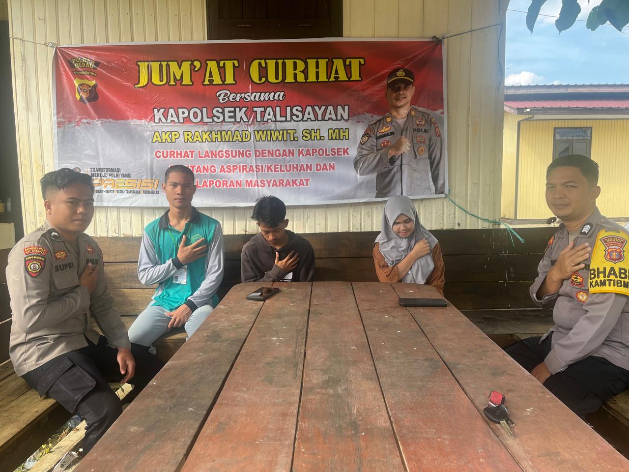 Bertempat di Kampung Tepian Buah RT 4, Kecamatan Segah, Kabupaten Berau, Polsek Segah kembali melaksanakan kegiatan Jumat Curhat bersama warga masyarakat, Jumat (10/10/2025). Kegiatan ini dipimpin oleh Ps. Kanit Binmas Polsek Segah Aipda Ariel RG bersama Banit Binmas Brigpol Renaldy, yang bertujuan untuk menampung aspirasi dan keluhan masyarakat terkait situasi keamanan dan ketertiban masyarakat (Kamtibmas).