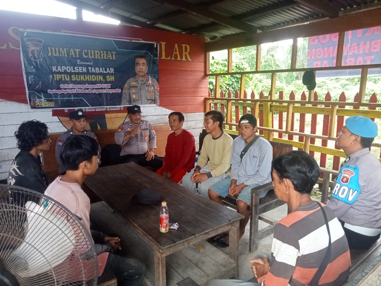 Dalam kegiatan Jumat Curhat, hadir berbagai pihak, termasuk Aiptu Agus Budi Santoso, Aiptu Iswanto dan masyarakat yang mengungkapkan masalah adanya kendaraan yang melintas Jalan Poros Tabalar menggunakan knalpot racing/blong yang membuat bising