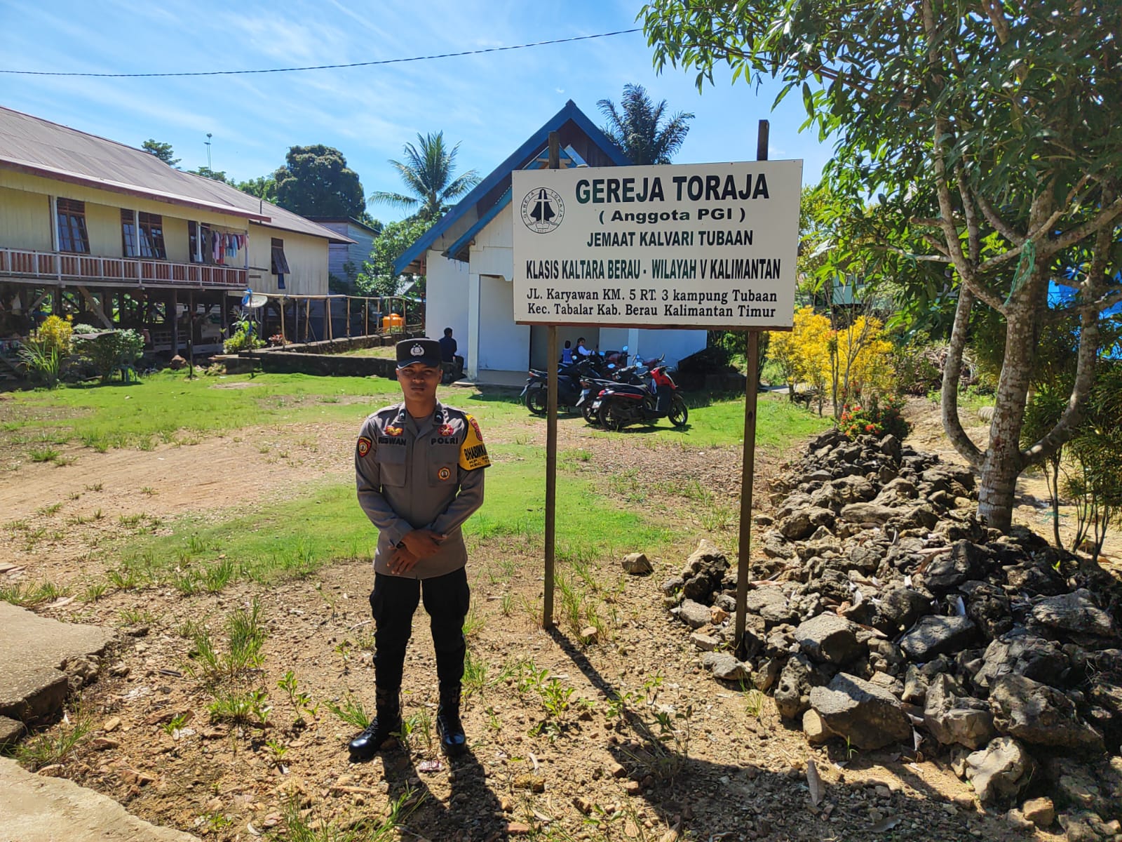 Tabalar, Berau – Dalam rangka memastikan keamanan dan ketertiban selama pelaksanaan ibadah Minggu, Polsek Tabalar Polres Berau melaksanakan patroli rutin pengamanan gereja pada Minggu (30/11/2025) pukul 09.00 WITA di wilayah hukumnya.