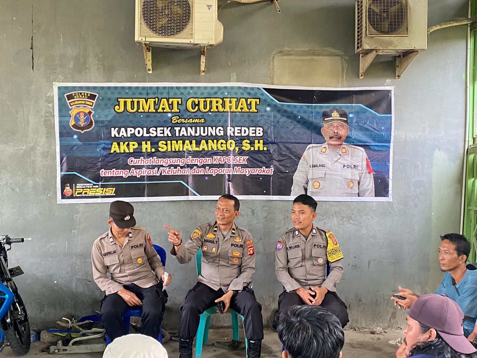 POLRESBERAU.COM, TANJUNGREDEB – Polsek Tanjung Redeb menggelar kegiatan “JUM’AT CURHAT” di SPBU Bujangga, Jl. Jenderal Gatot Subroto RT 01, Kelurahan Sei Bedungun, Kecamatan Tanjung Redeb, Kabupaten Berau. Kegiatan ini dipimpin oleh Waka Polsek Tanjung Redeb, Ipda Nana Taryana, SH, dengan tujuan mendengarkan aspirasi dan keluhan masyarakat terkait keamanan dan ketertiban masyarakat (Kamtibmas) di wilayah Kelurahan Sei Bedungun.