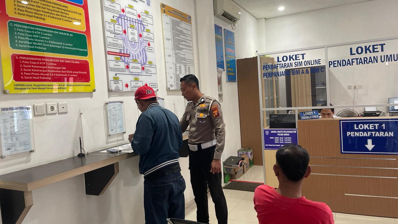 Kegiatan sosialisasi tersebut dilaksanakan di lingkungan pelayanan SIM Satlantas Polres Berau dan menyasar langsung para pemohon SIM, baik SIM baru maupun perpanjangan. Petugas memberikan penjelasan terkait tahapan pembuatan SIM, persyaratan administrasi, serta mekanisme pelayanan yang cepat, transparan, dan sesuai ketentuan yang berlaku.